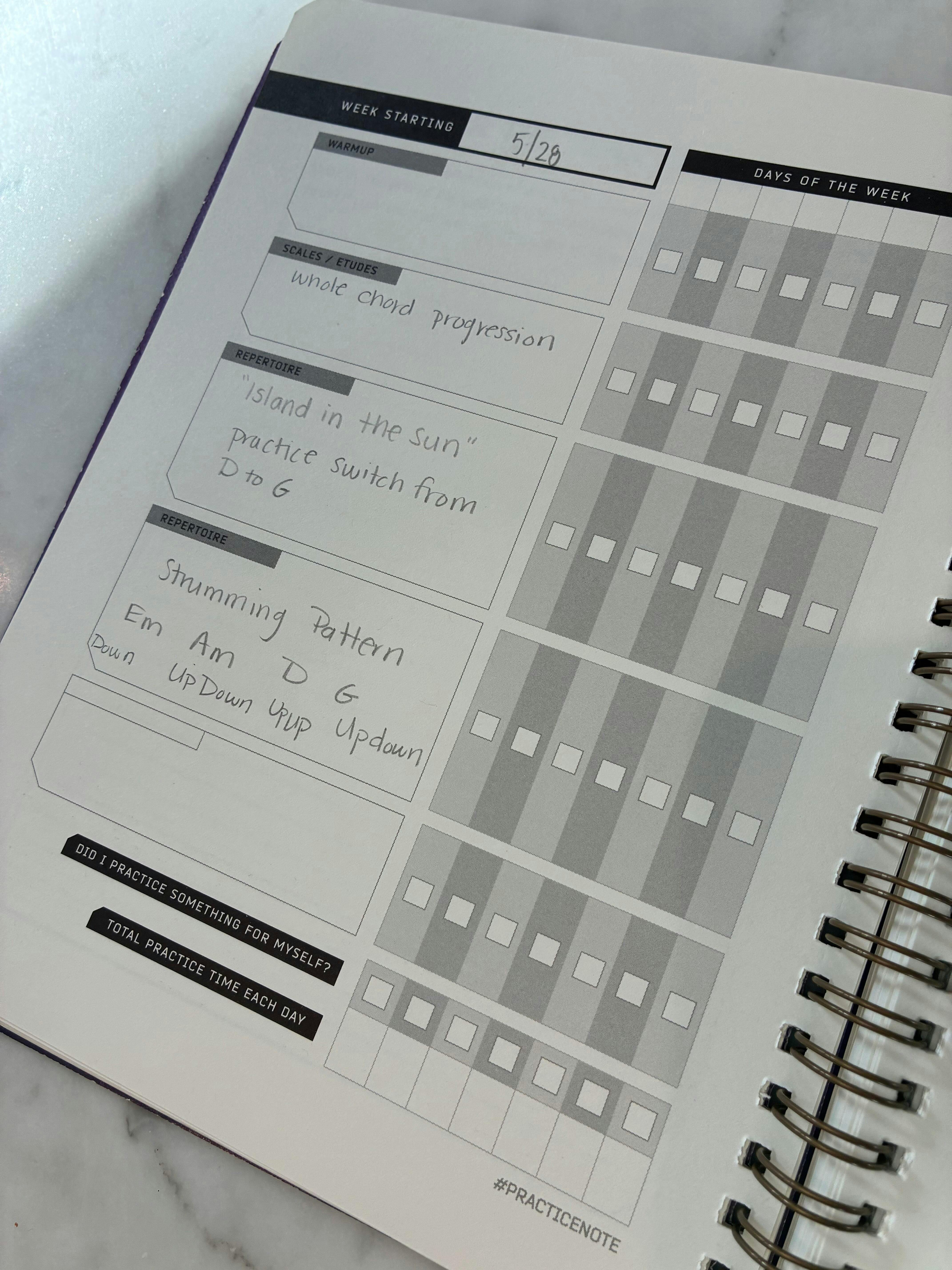 This is my second Practice Note purchase. The layout looks amazing and is geared specifically towards musicians, it is of a very high quality, and there are tons of tips from Gina Luciani. My playing has improved significantly as a result of the more focused practice sessions, and keeping track of short and long-term goals. I highly recommend Practice Note!